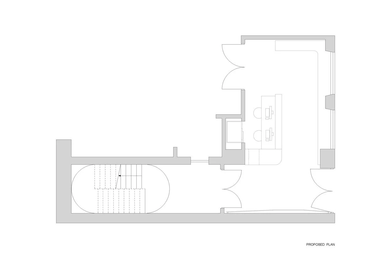 The compact and uninteresting area services 4 floors and over 200 staff. Conscious of the limitations of this key transitional space, our team sought to create a greater sense of volume focusing on breaking the plains which limited the room. This was achieved through mirrored walls, a painted ceiling and scalloped sections folding from horizontal to vertical. A single diffuse light-box, created a sense of luminosity, space and continuity, while the use of natural materials alluded to the transience of the space.